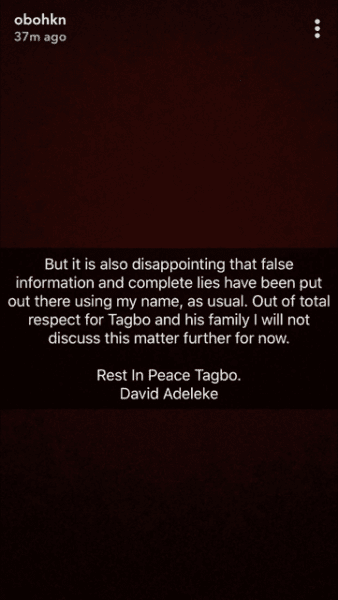 Davido expressed his sadness and surprise at the death of his “bro”, Tagbo, while also condoling with Tagbo’s family on his (Tagbo’s) demise